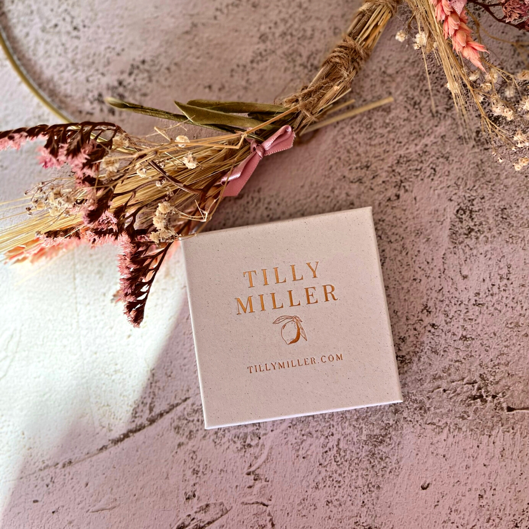 In order to protect your jewellery, we recommend that your Tilly Miller necklace should avoid contact with perfume, false tan, lotions and water where possible. Treat and store your necklace with care and clean with a silver polishing cloth if needed.